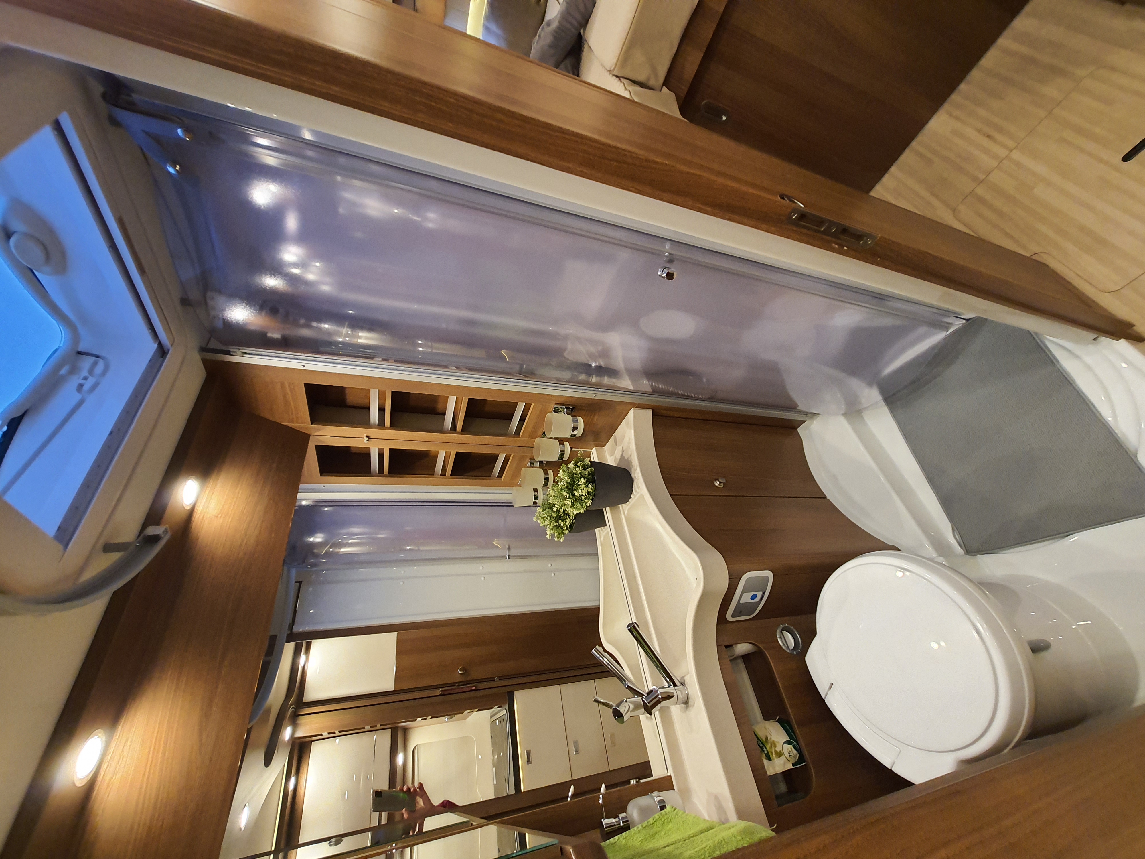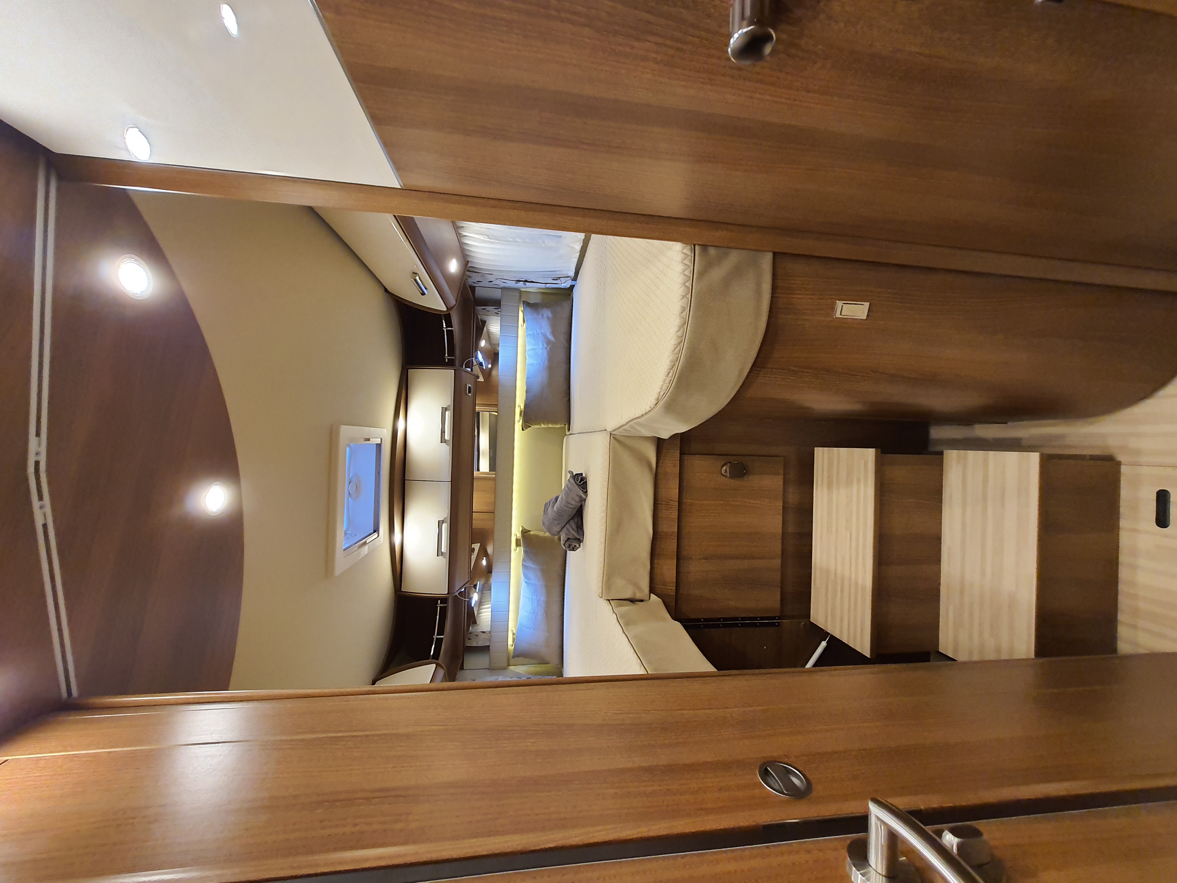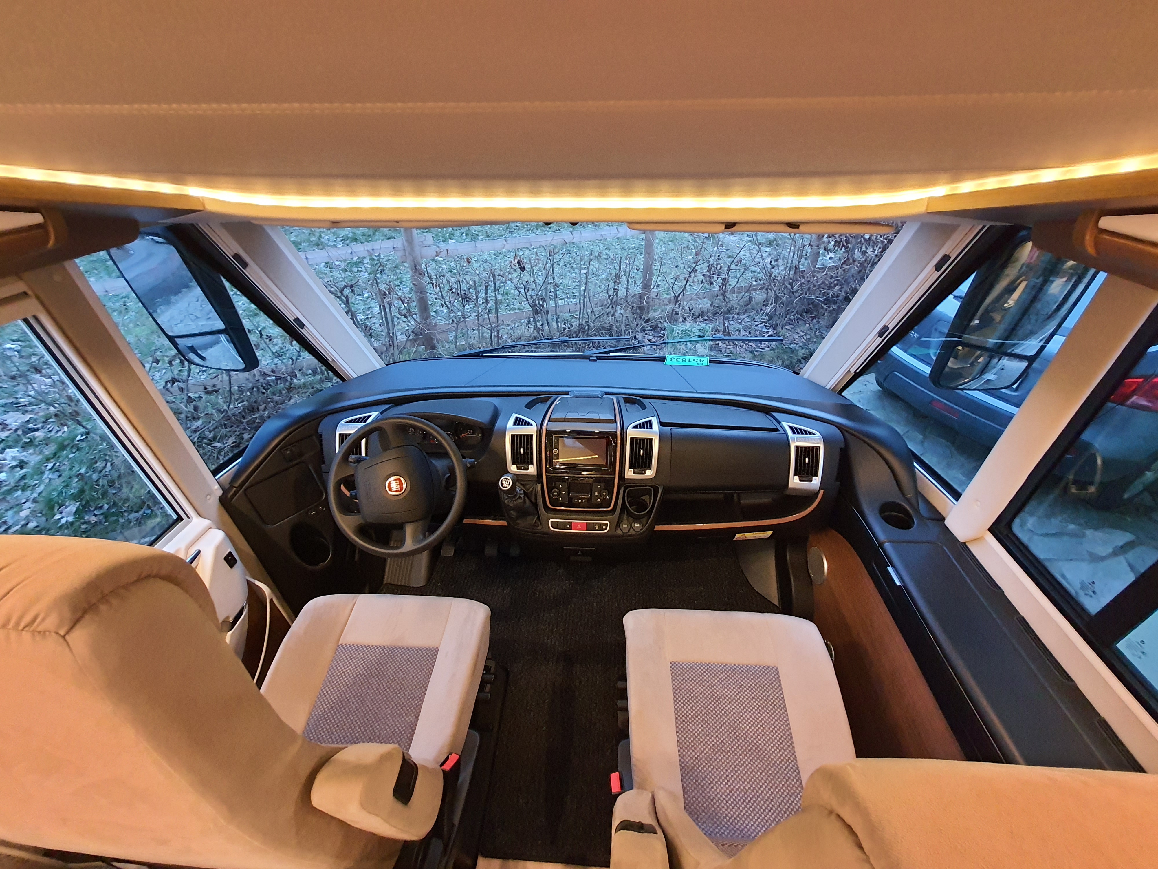 Parkovací (couvací) kamera, autorádio s navigací a GPS, 32 palcový LED televizor, střešní markýza 4,5x2,5m s osvětlením, solární panel 110 Watt, elektrický větrák ve střešním okénku nad kuchyní, všude v oknech roletky nebo stínící žaluzie a sítě proti hmyzu.