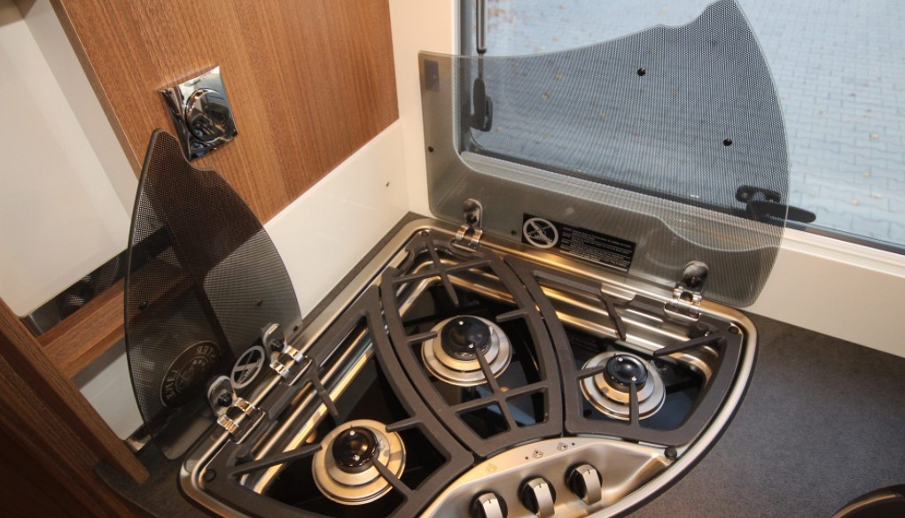 Dále je vůz vybaven kompletním kuchyňským vybavením: sada nádobí, talířů, příborů a všeho co bude potřeba (škrabka, otvíráky, naběračka, prkénko, cedník, struhadlo atd.), vařit lze na 3 plynových vařičích.