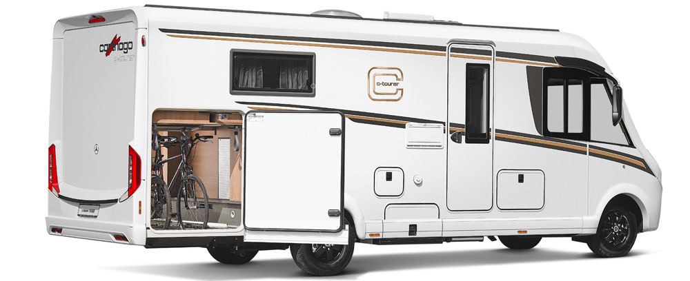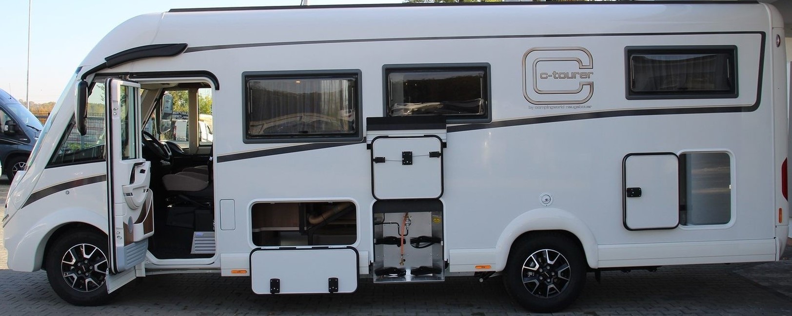 Podívejte se na extérní fotky obytného vozu. Všude dostatek úložného prostoru, který je přístupný zvenku. Dále velká garáž vzadu pojme hodně věcí, skútr, kempingové vybavení, lyže a další sportovní vybavení.